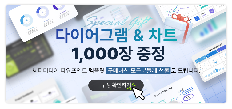 구매 고객에게는 다이어그램&차트 1000장을 선물로 드립니다. 비즈니스 프레젠테이션에 다양한 데이터를 효과적으로 표현할 수 있도록 해, 더욱 전문적인 자료 만들기가 가능합니다.