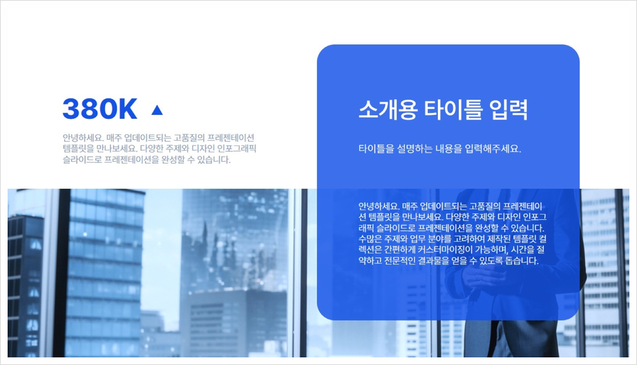 비즈니스 환경에서 발표 시 청중들의 관심을 사로잡고, 설득력을 향상하기 위해 프레젠테이션 템플릿을 사용해 본 경험이 있으실 텐데요. 이런 프레젠테이션 템플릿은 준비하는 과정이 시간이 많이 소요되고, 파워포인트 디자인이나 다양한 차트 활용에 있어 관련 지식이 없다면 번거로운 작업이라 여겨지죠.