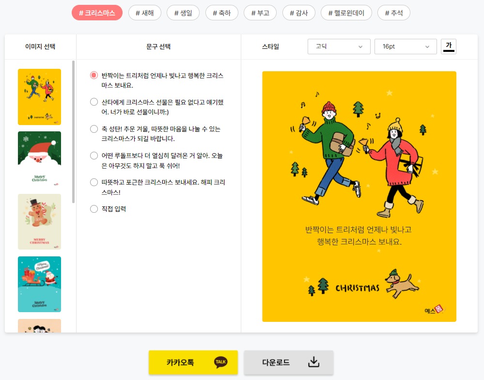 완성된 카드는 카카오톡을 통해 전송하실 수 있습니다.