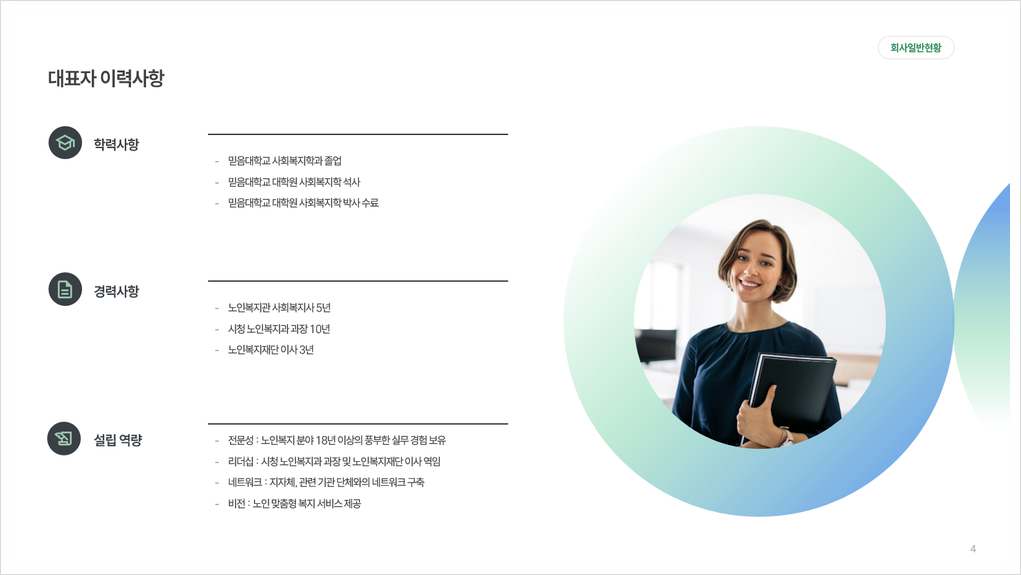복지관 설립에 관한 샘플을 생성형 AI 기술을 활용하여 예시로 제작된 샘플 예제이며 실제 노인복지 설립에 도움 되는 목차와 템플릿으로 구성되어 있어 사업 및 정책자금 용도로 적용하기에 유용한 자료입니다.
