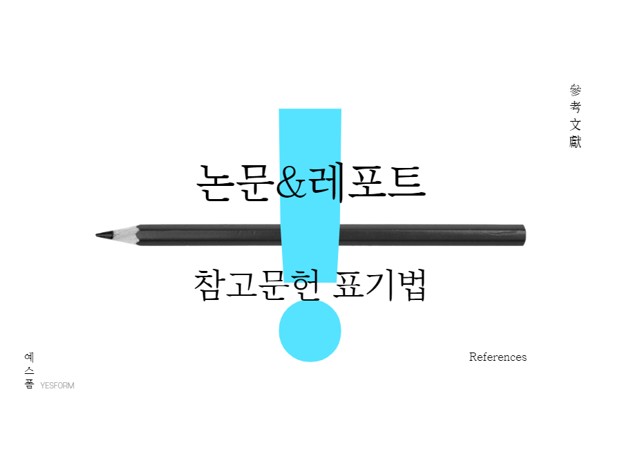 특히 대학생들은 레포트, 소논문, 학사 졸업 논문 등 리포트와 논문을 쓸 일이 무척 많아지기 때문에 명확한 참고문헌 표기법을 알아두는 것이 중요합니다. 이번 시간에는 예스폼과 함께 올바른 참고문헌 표기법에 대해 알아보는 시간을 갖도록 하겠습니다.
