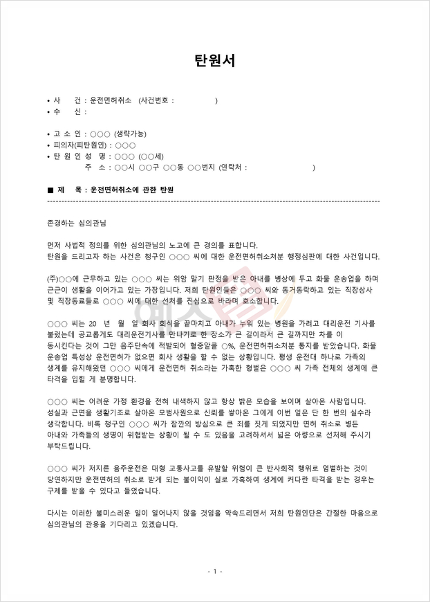 음주운전사건 탄원서 | 탄원서 (음주운전 면허취소) | 탄원서 (음주운전으로 인한 면허취소) |
