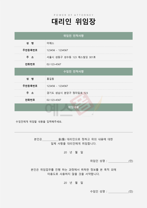 수임인에게 위임할 내용을 구체적으로 기재합니다. 위임 내용과 더불어 언제까지 권한을 위임하겠다고 유효기간을 설정해두는 것이 좋습니다.