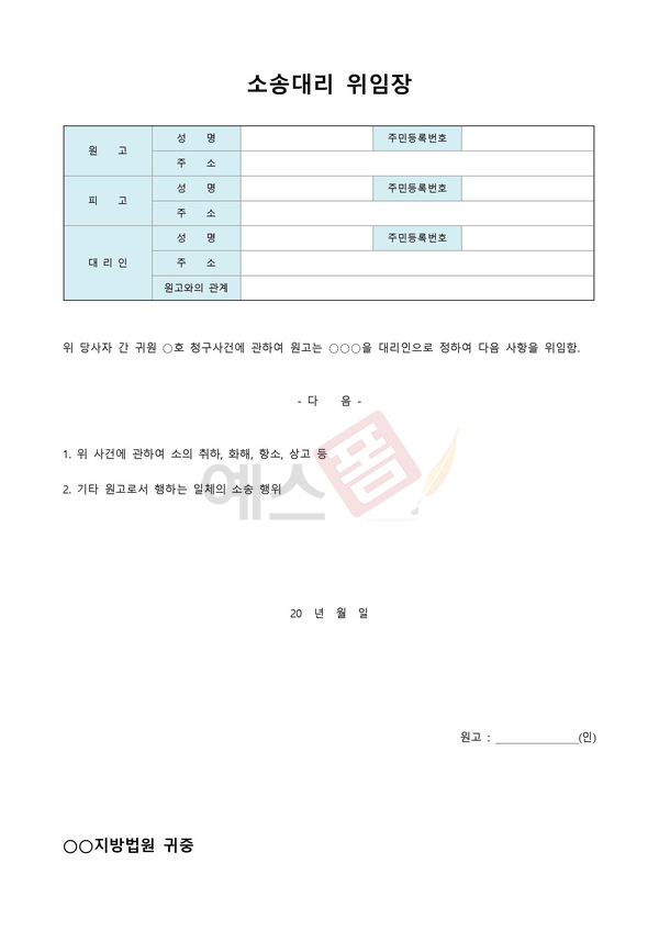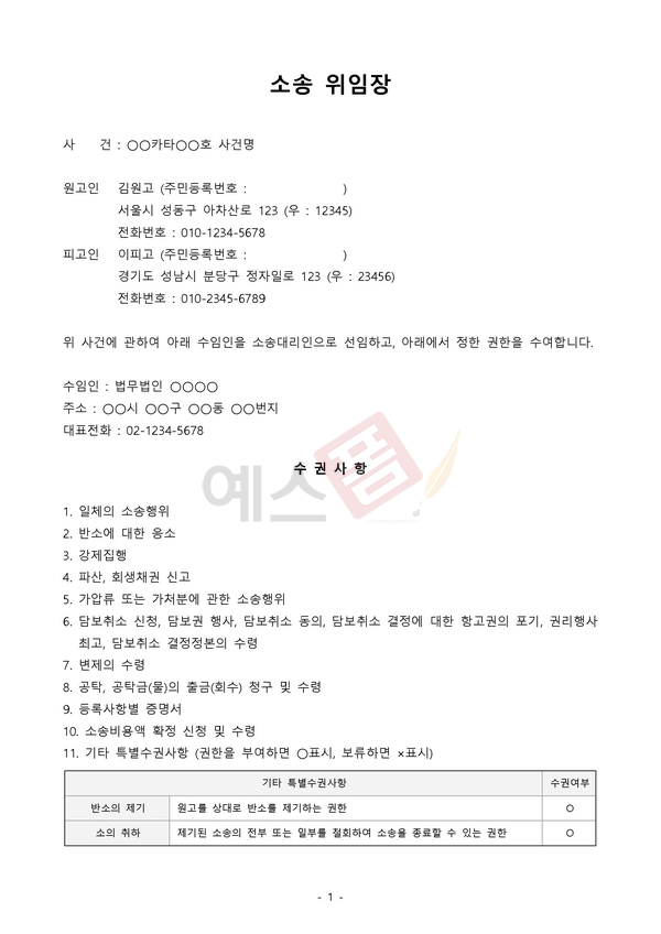 | 소송대리 위임장 | 형사 고소 위임장 | 민사소송 위임장 |