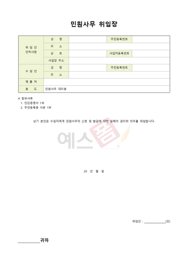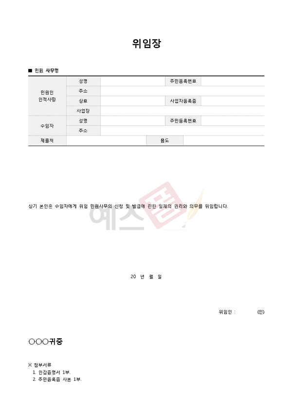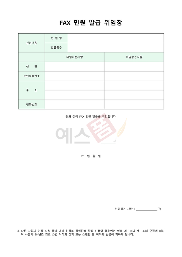 | 민원사무 위임장 | FAX 민원 발급 위임장 | 민원 위임장 |
