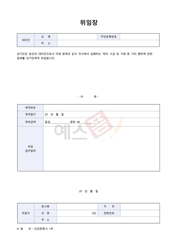 | 업무 대리인 위임장 | 위임장 (업무) | 위임장 (정기총회) |