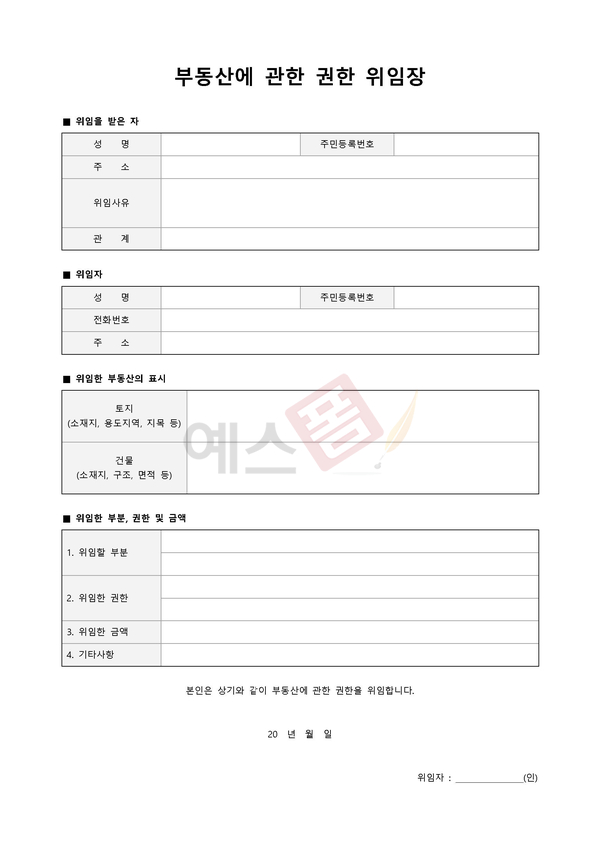 | 위임장 (부동산 근저당권 설정) | 위임장 (부동산 임대차 계약) | 부동산에 관한 권한 위임장 |