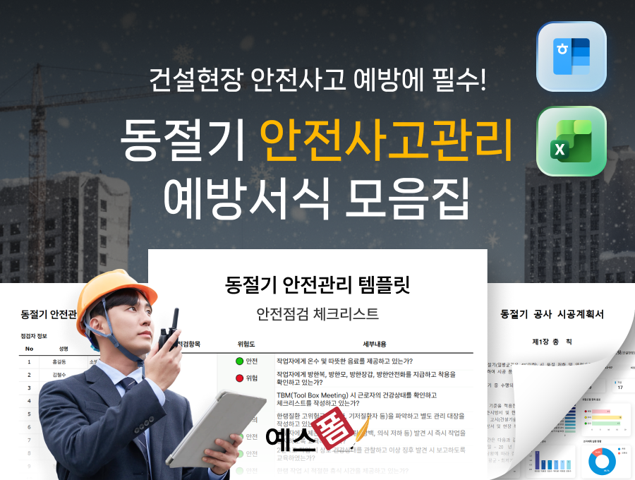 #동절기안전관리 #동절기안전관리템플릿 #동절기공사시공계획서 #안전관리계획서 #안전관리계획서양식 #3정6S #건설현장안전 #중대재해예방 #예스폼 #겨울철안전점검 #동절기건설현장 #안전관리서식 #건설안전 #산업안전 #현장안전
