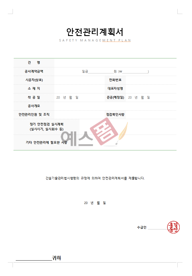 공사 착공 전 발주처·감독기관 제출용 서식이 필요하신 분