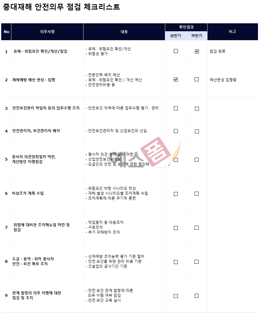 👇👇중대재해 안전의무 점검 체크리스트 다운로드👇👇