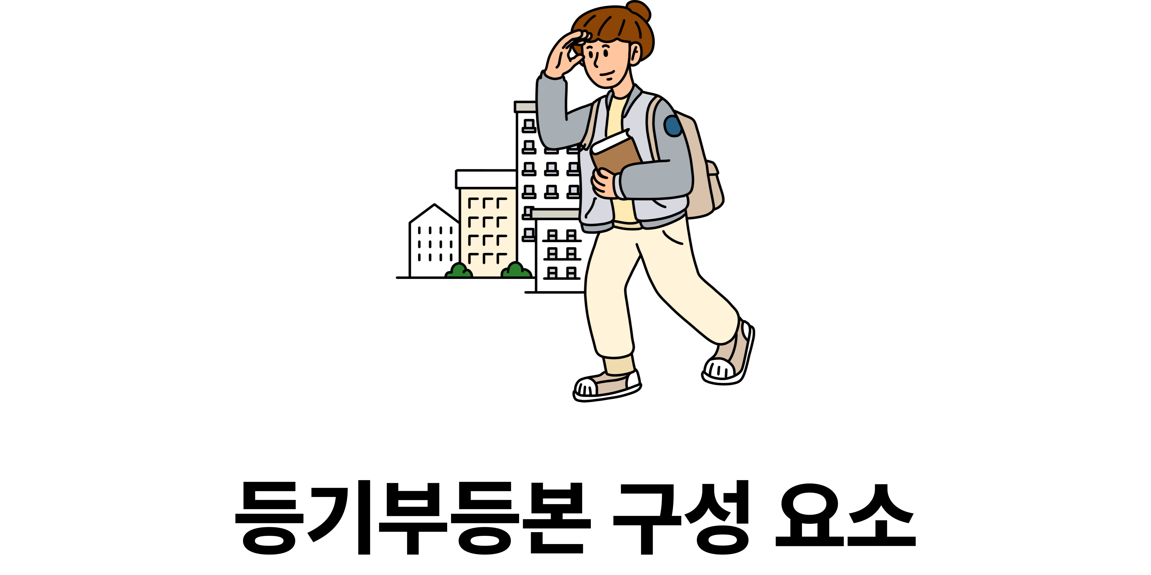등기부등본은 표제부, 갑구, 을구 세 가지 항목으로 구성되어 있는데요. 이 세 가지 구성요소를 통해 해당 부동산의 임대인은 누구고, 건물에 대한 빚, 담보, 해당 부동산으로 피해가 발생한 적은 없는지 등을 모두 확인할 수 있습니다.