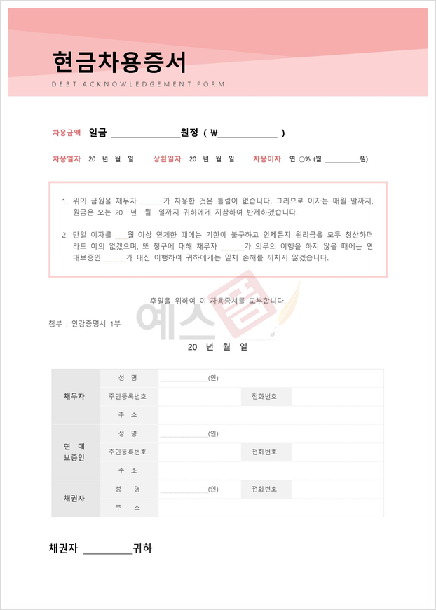 | 현금차용증서 | 금전차용증서 | 금전차용증 |