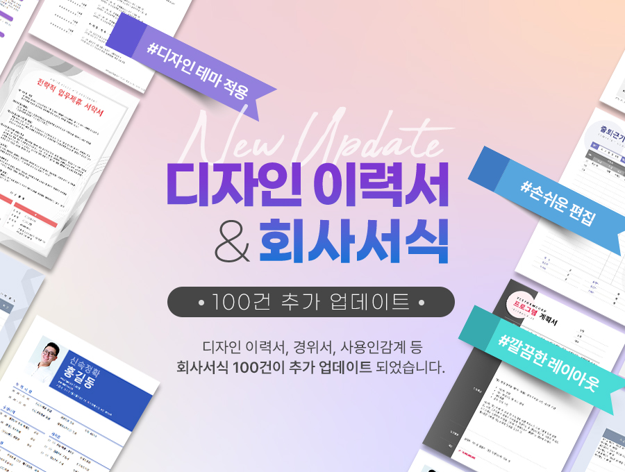 회사서식 100건이 추가 업데이트되었습니다.
