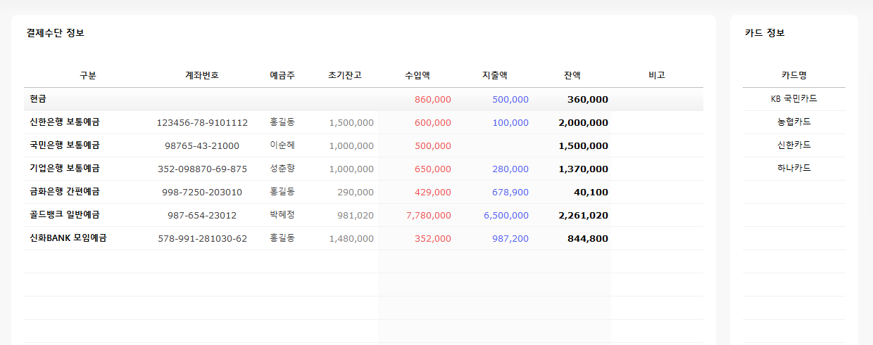 🪙 수입, 지출 항목