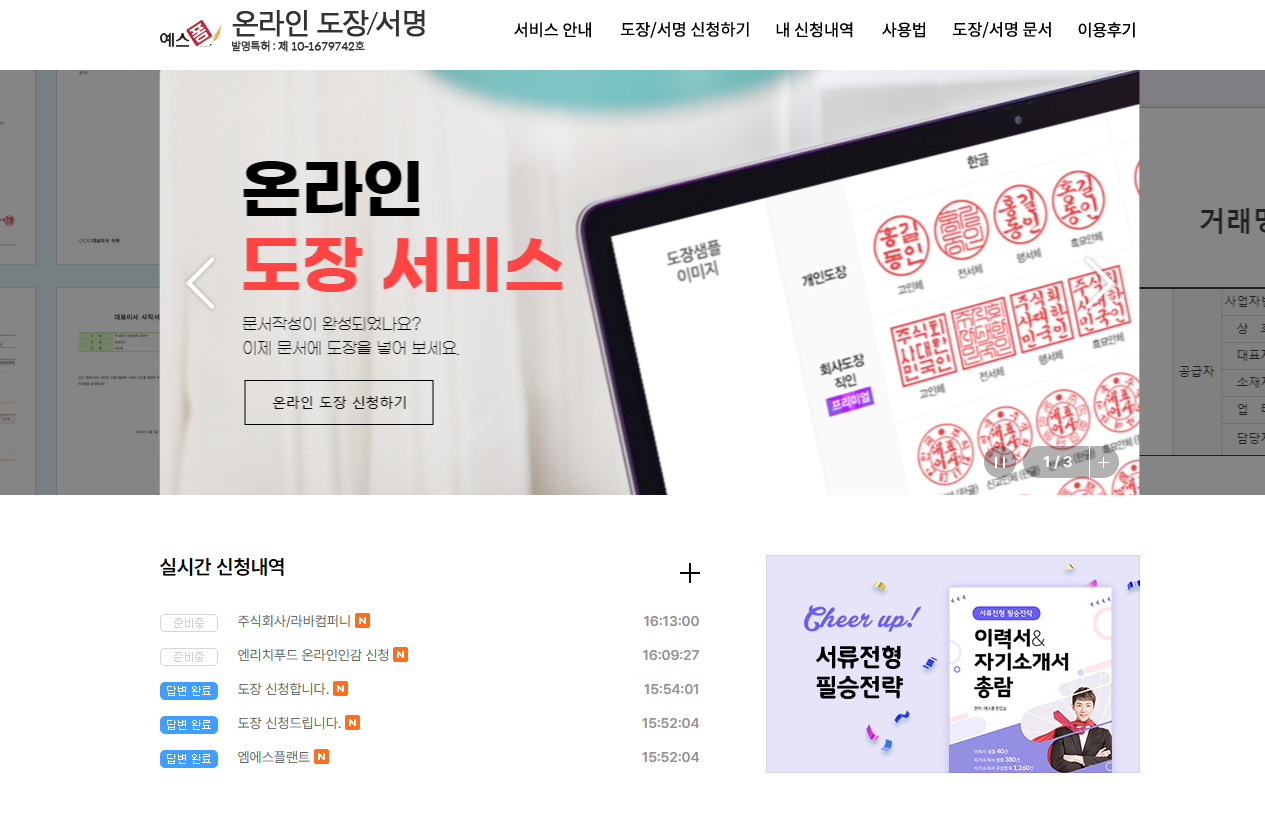 예스폼 온라인 도장/서명 사이트 - 100% 무료 서비스
