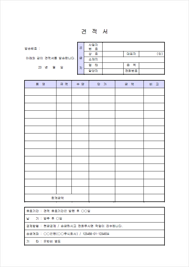 ※ (견적서)하단 기재사항 추가형식 다운로드