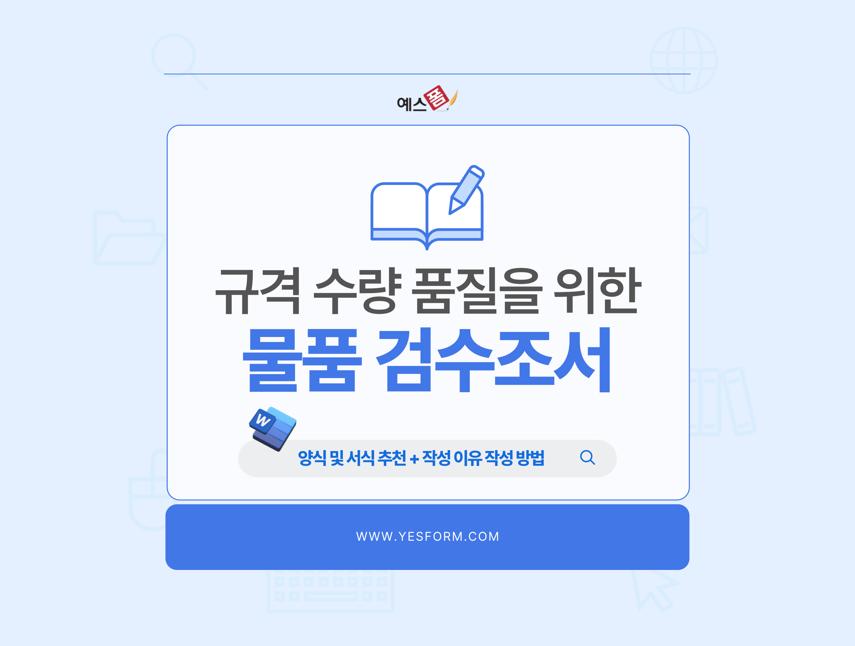 검수는 업무상 다량의 물품을 구입했다면 필수적인 과정인데요. 물품검수조사서를 왜 작성해야 하는지, 어떻게 작성해야 하는지 작성법을 확인한 후에 물품 구입 시에는 물품검수조사서를 반드시 작성해 보시기 바랍니다. 만약 물품검수조사서 작성이 어려우실 경우에는 예스폼에서 제공드리는 양식을 활용하여 간편하게 작성해 보세요.