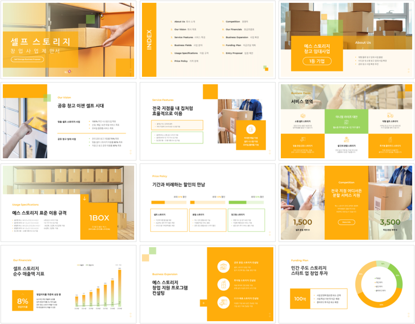 이러한 셀프 스토리지 사업이 주목 받으면서 앞으로 시장 규모가 더욱 커질 것으로 전망되고 있는데요. 셀프 스토리지 사업 창업을 계획 중이신 분들을 위해 예스폼에서 셀프 스토리지 사업을 주제로 사업계획서 샘플 자료를 업데이트 하였습니다. 미니멀 라이프 시대에 맞는 셀프 사업에 대해 잘 기술하고 간략하게 사업 제안을 할 수 있는 피치덱 사업계획서로 관련 사업을 소개하고 투자를 유치해보세요.