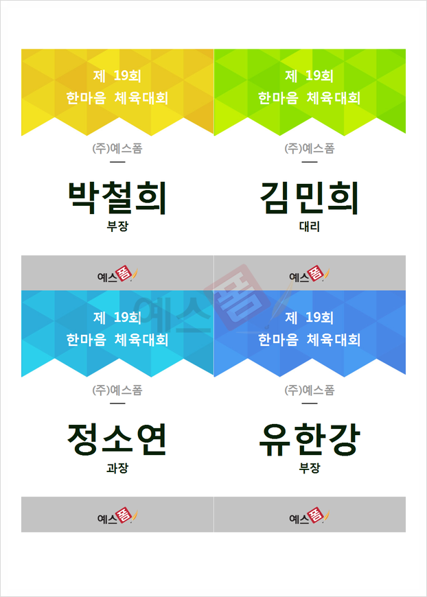 | 체육대회 대진표 (라인형) | 체육대회 직원 네임택 |