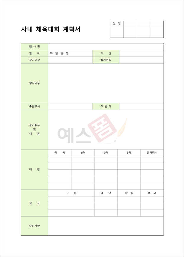 체육대회 준비를 위한 서식