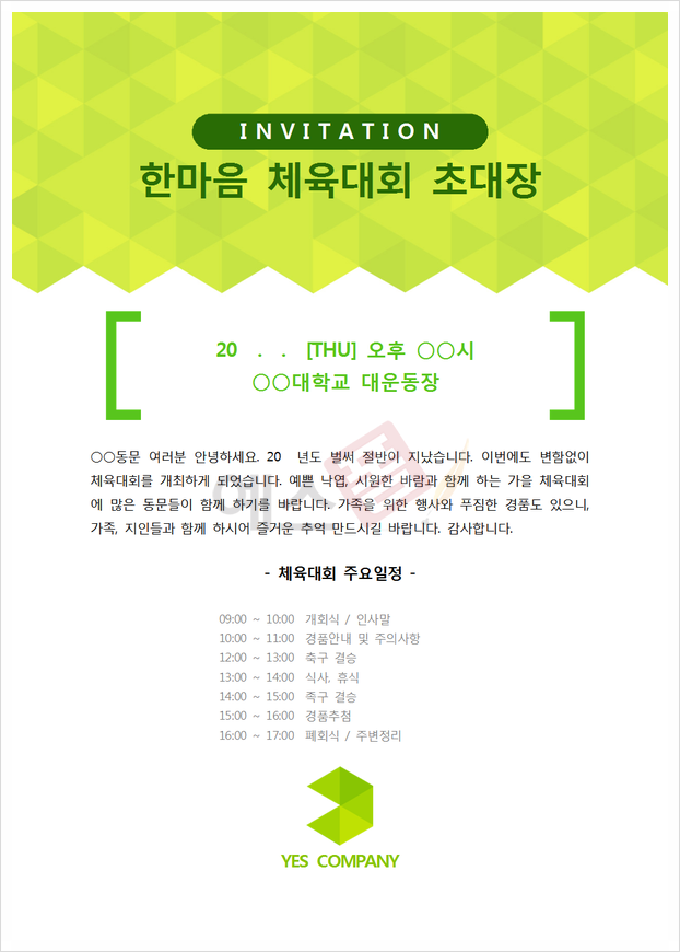 | 체육대회 초대장 | 사내 체육대회 계획서 |