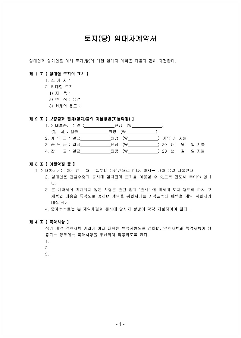부동산 임대차계약서(토지, 땅을 임대하는 경우) | 변호사 항목해설