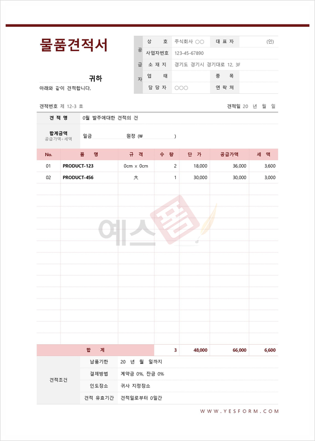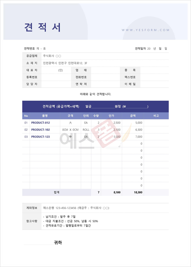 | 견적서(계좌 정보) | 물품 견적서 | 견적 의뢰서 |