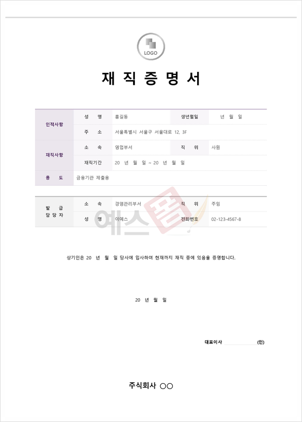 근로계약서, 거래명세서, 견적서, 사직서, 재직증명서 등