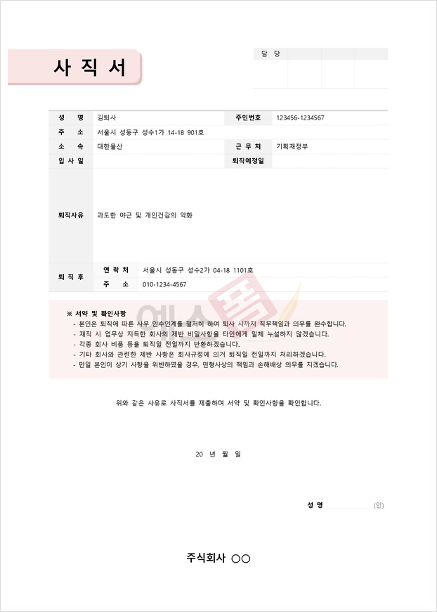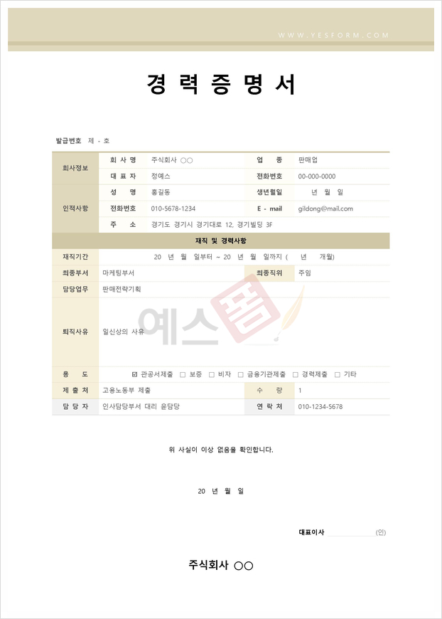 근로계약서, 거래명세서, 견적서, 사직서, 재직증명서 등