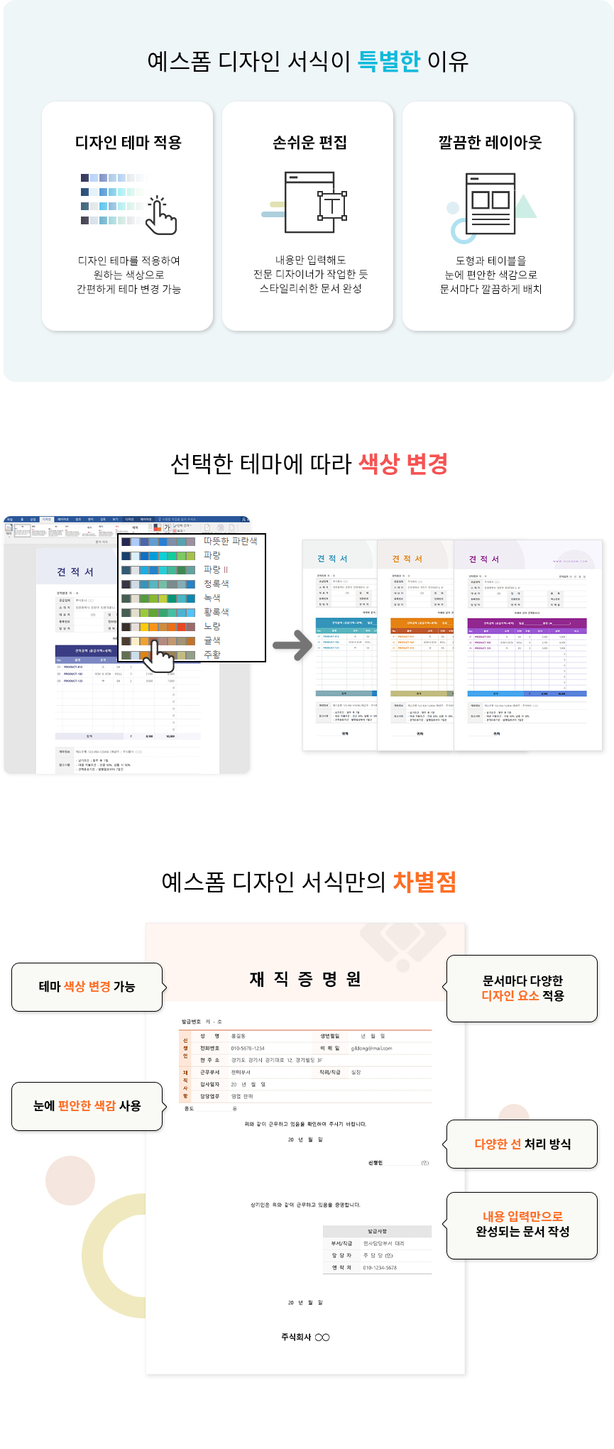 편안한 컬러로 제작되어 시각적으로 깔끔한 디자인 서식으로