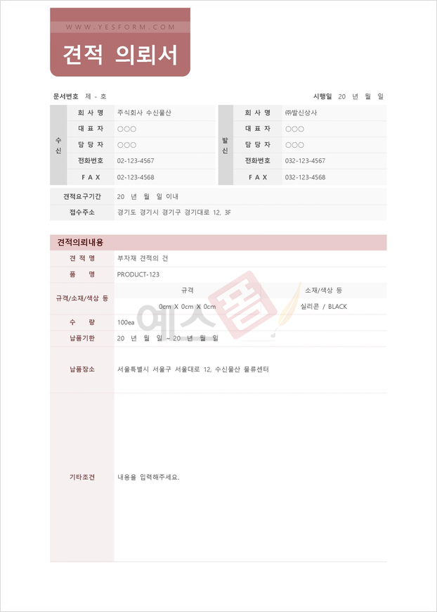 | 견적서(계좌 정보) | 물품 견적서 | 견적 의뢰서 |