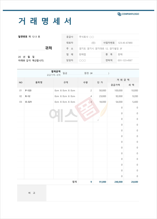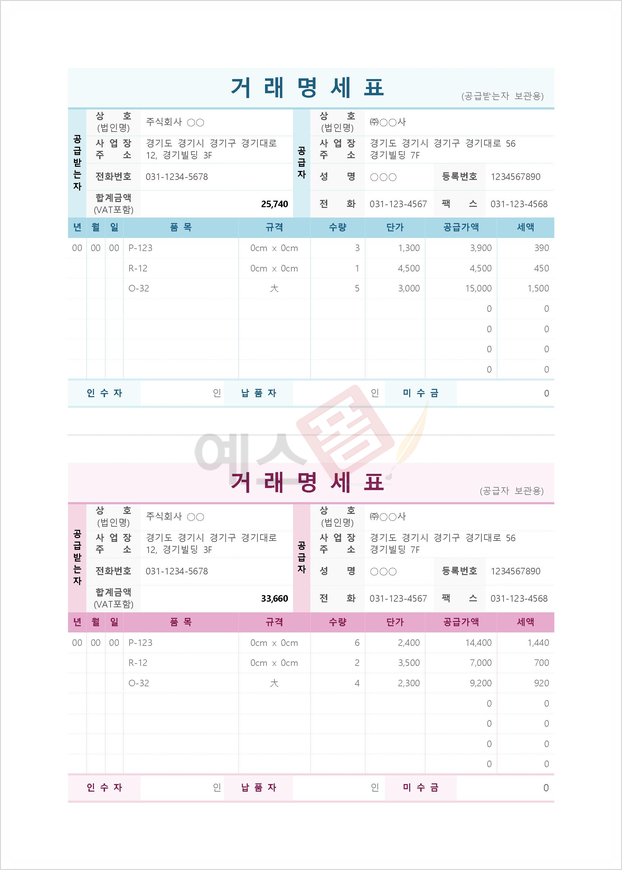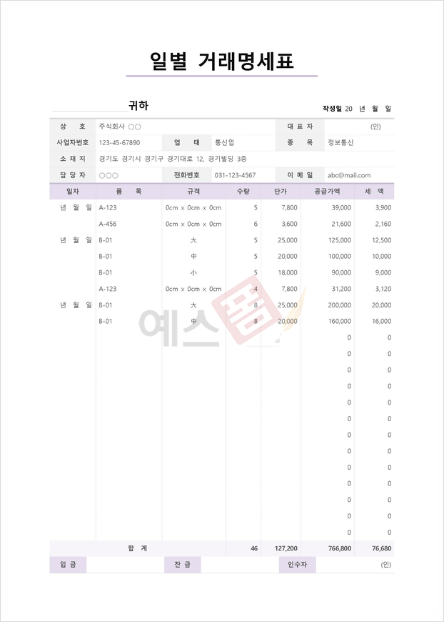 | 거래명세서 | 거래명세표 | 사원대출금 차용증 |