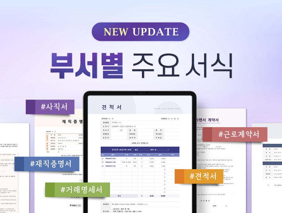 각 부서에서 자주 사용하는 서식이 더욱 깔끔하게 변경되었습니다.