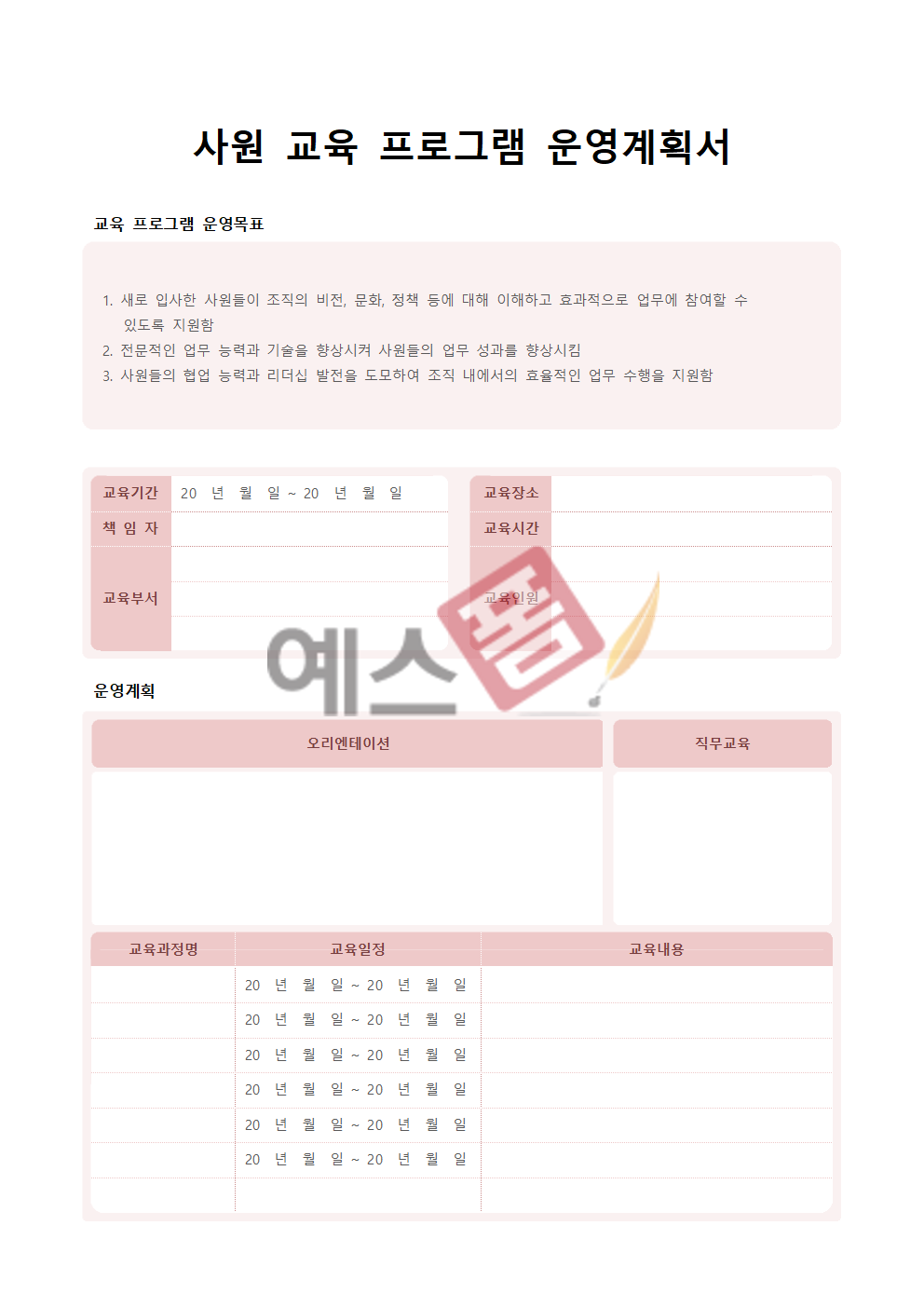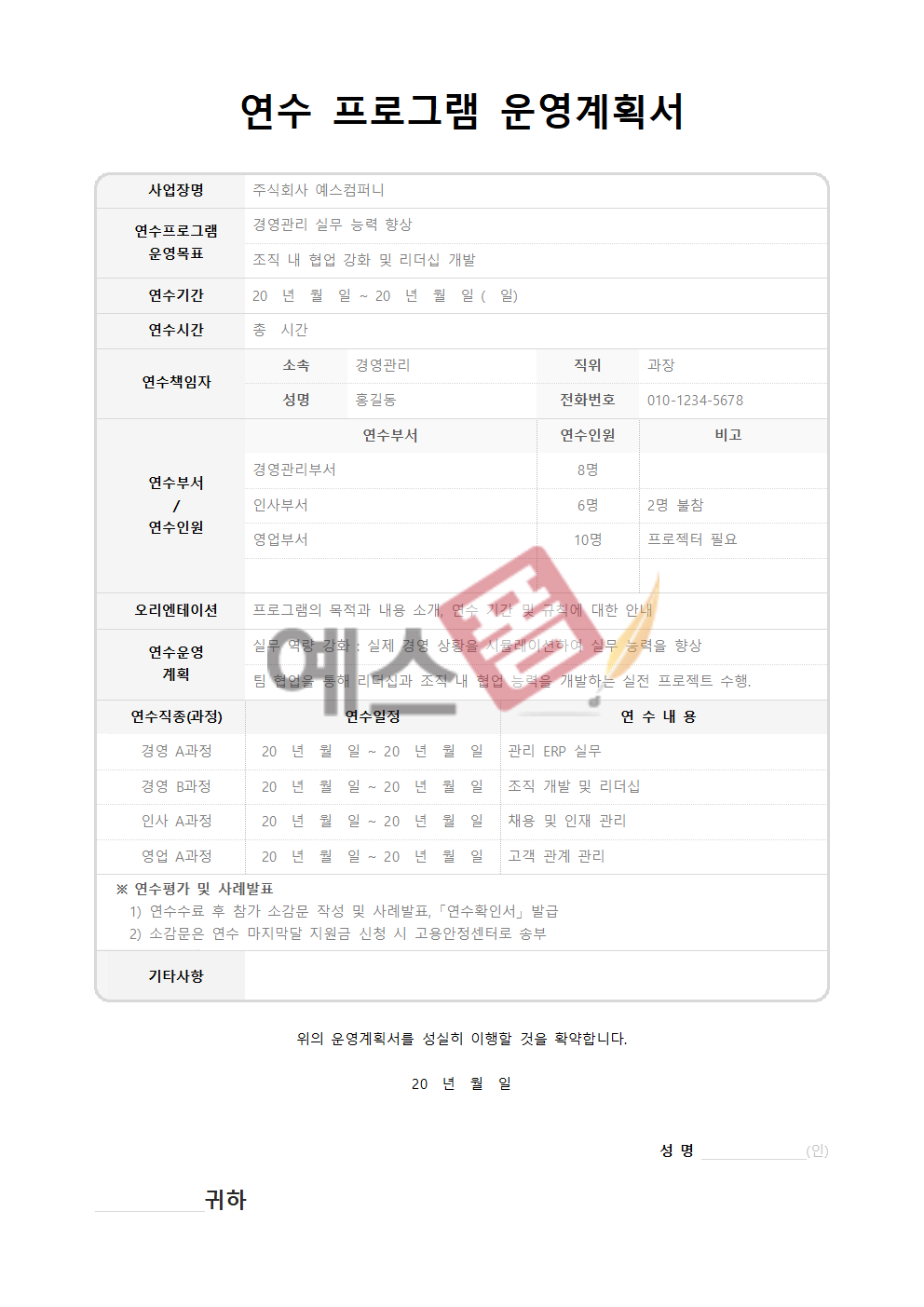 | 연수 프로그램 운영계획서 | 사원 교육 프로그램 운영계획서 |
