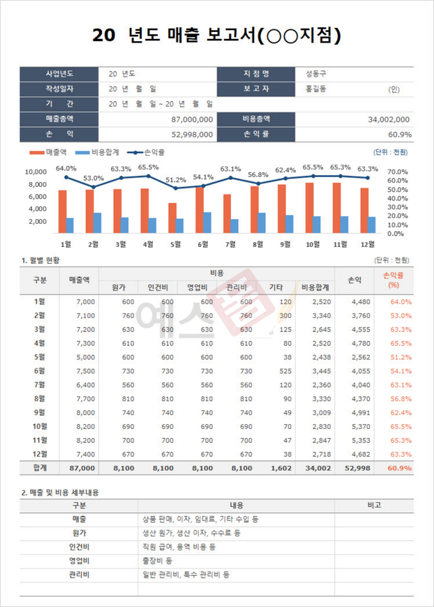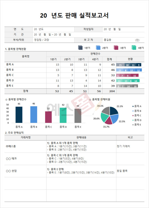 | 판매 실적보고서 (분기별) | 매출 결산보고서 (지점별) |