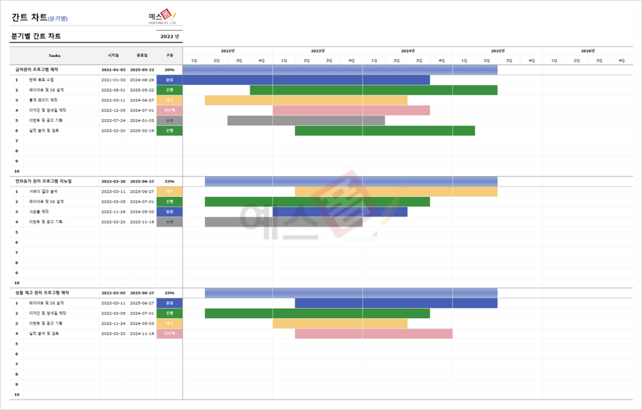 | 분기별 간트차트 | 분기별 매출성과 보고서 |