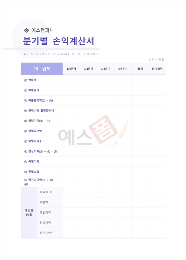 | 분기별 업무보고서 | 분기별 손익계산서 |