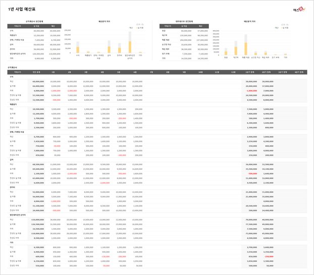 1년 사업 예산표