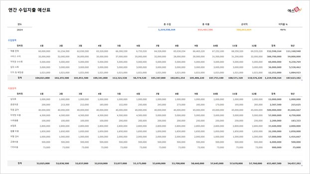 연간 수입 지출 예산표