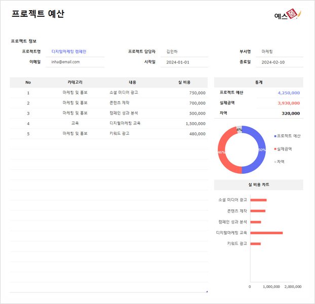 새로운 사업, 프로젝트를 시작하거나 기존 사업을 확정하려는 분들은 예산에 대해 고민해 보셨을 텐데요. 정확한 예산 산정은 매우 중요합니다. 정확한 예산 산정이 되지 않는다면 프로젝트 지연, 크게는 예상치 못한 손실로 이루어질 수 있기 때문입니다. 예스폼에서는 사업, 프로젝트를 준비하시는 분들을 위해 이번에 예산서 양식을 업데이트하였는데요.