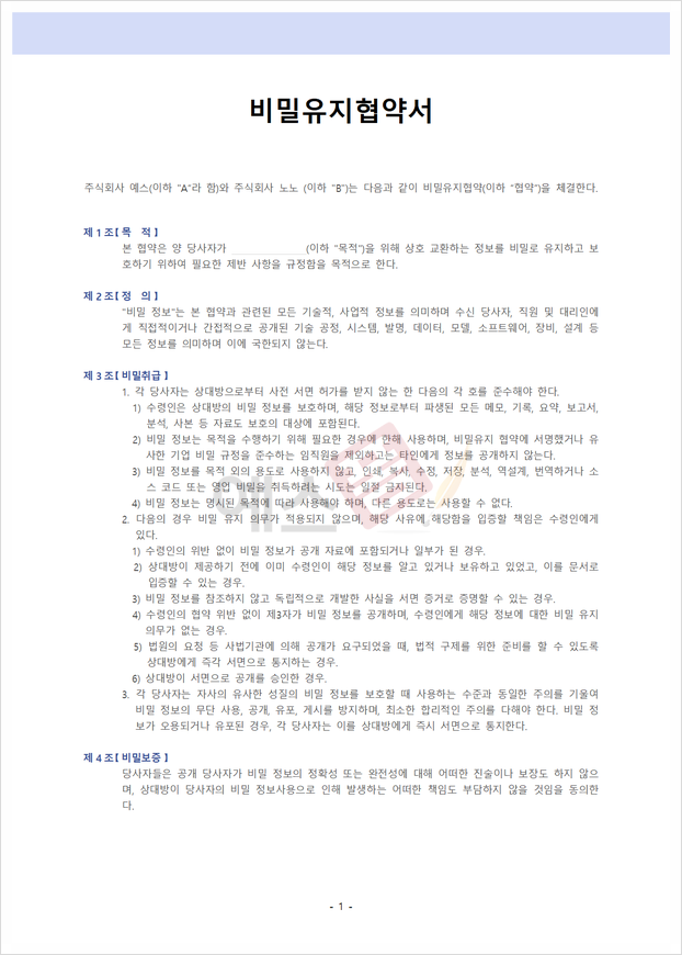 📑 비밀유지 계약서 NDA 양식 및 예시 모음