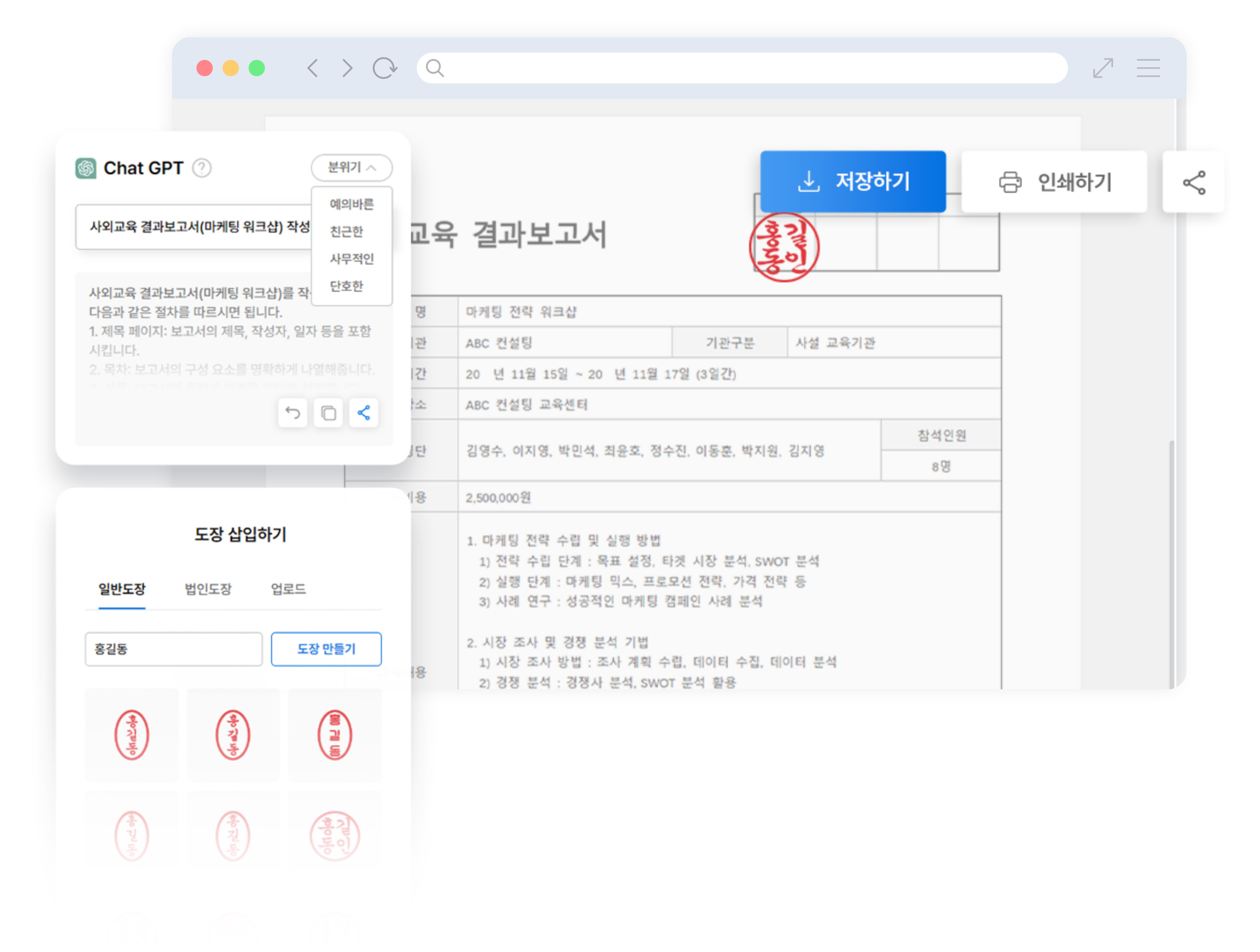 웹에서 바로 편집하고, 프린트하고, 도장까지! 📝