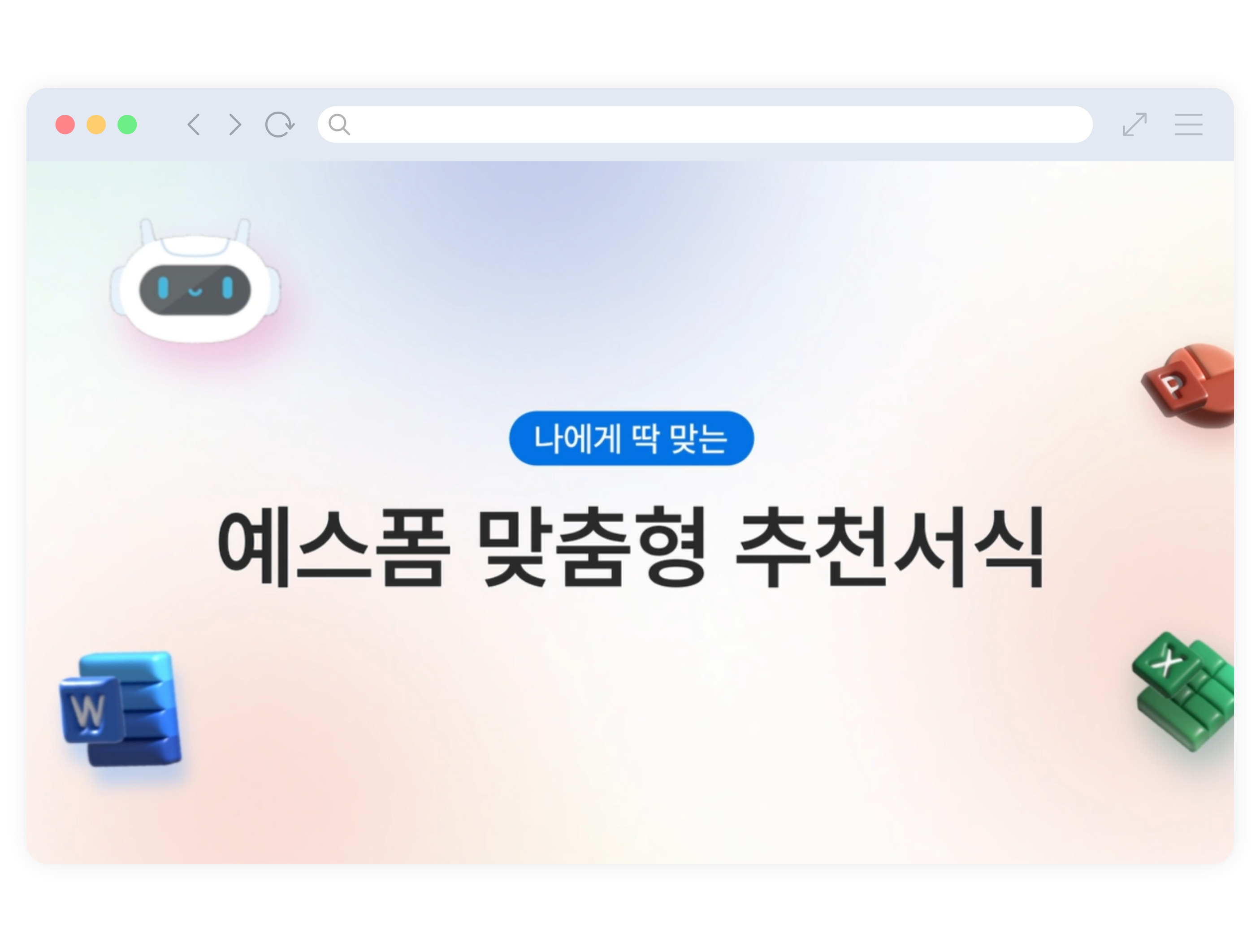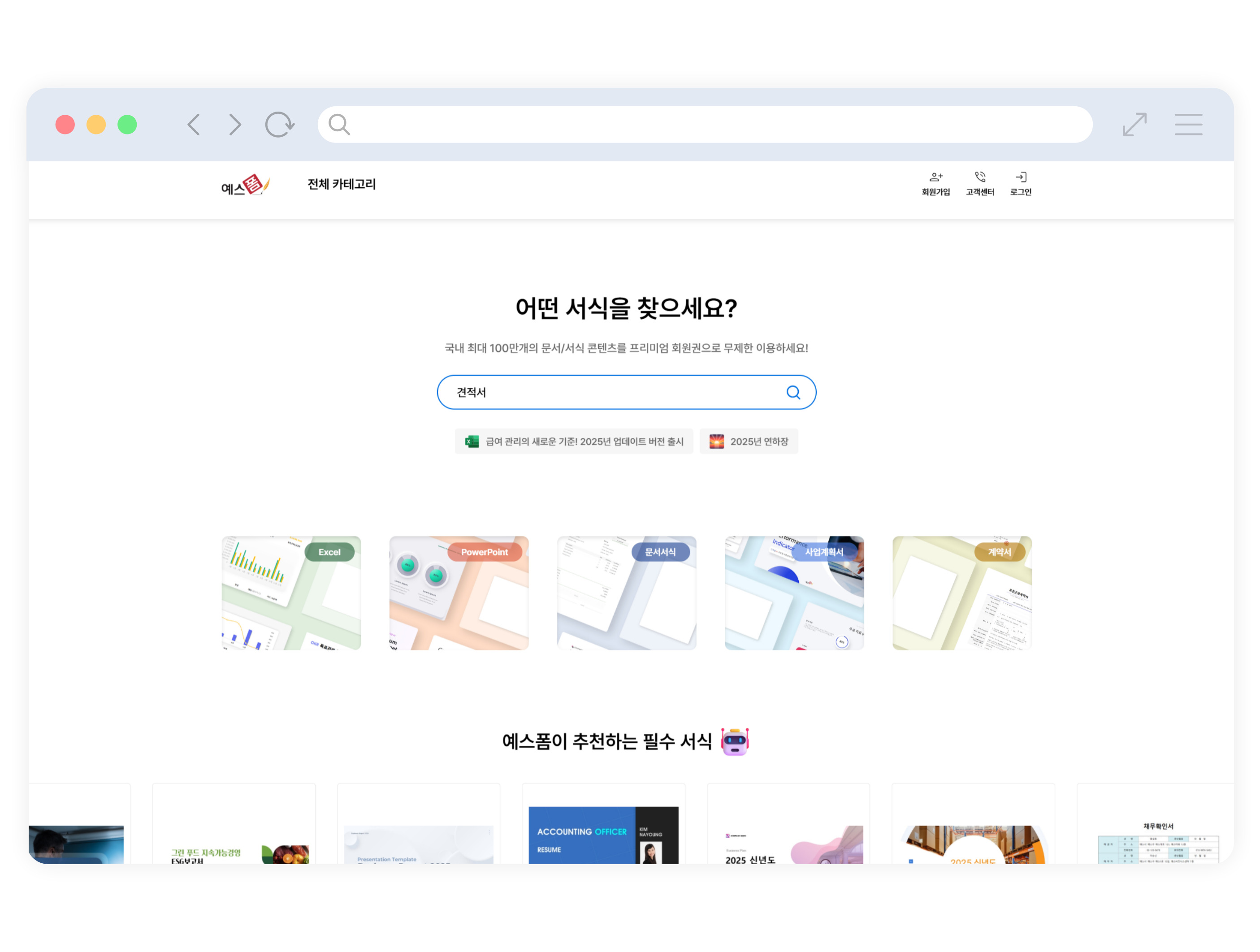 예스폼은 회원님의 관심사와 최근 검색 기록을 분석하여 100만 개 이상의 서식 콘텐츠 중 가장 적합한 서식을 추천합니다.