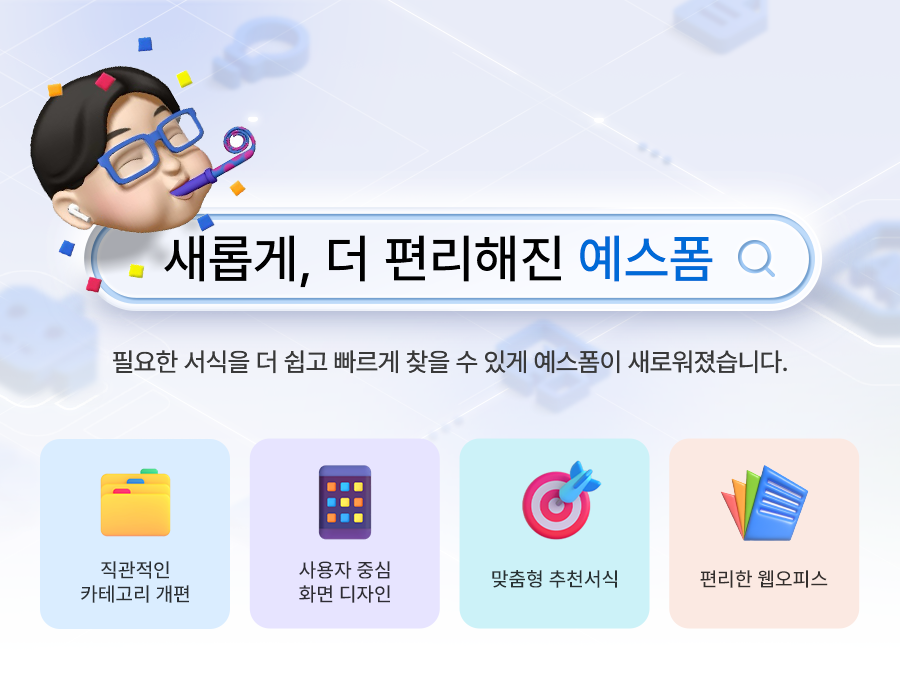 새롭게, 더 편리해진 예스폼을 통해 직장에서 필요한 서식 양식을 훨씬 쉽게 찾아 업무 효율성을 높여보세요.