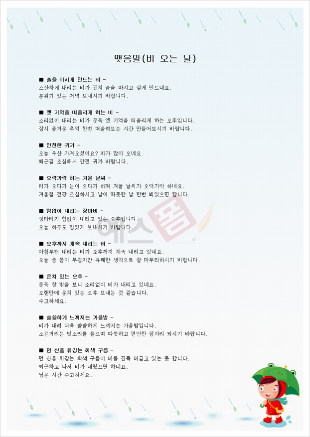▼▼ 예스폼 비 오는 날 맺음말(20개) 바로가기 ▼▼