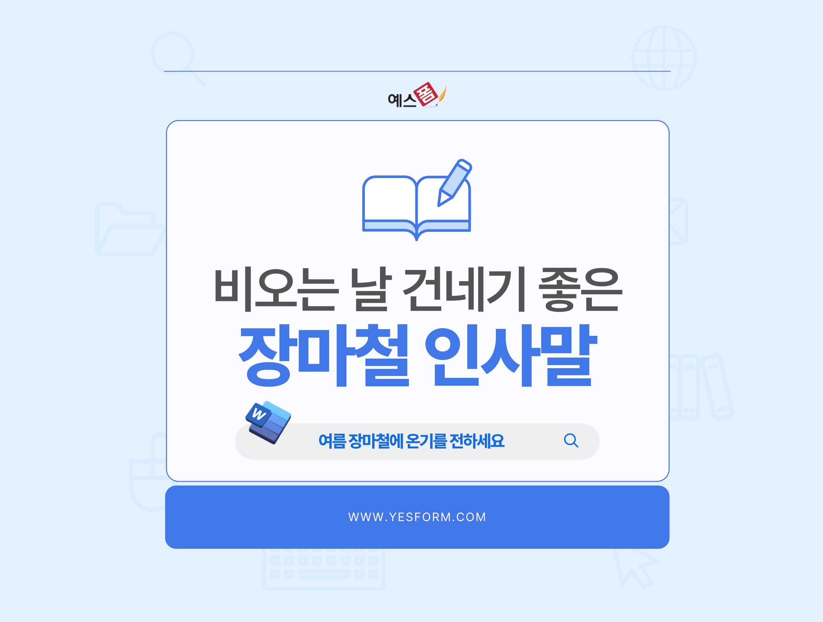 오늘은 예스폼에서 여름 장마철 인사말 추천에 대해서 알아보도록 하겠습니다.
