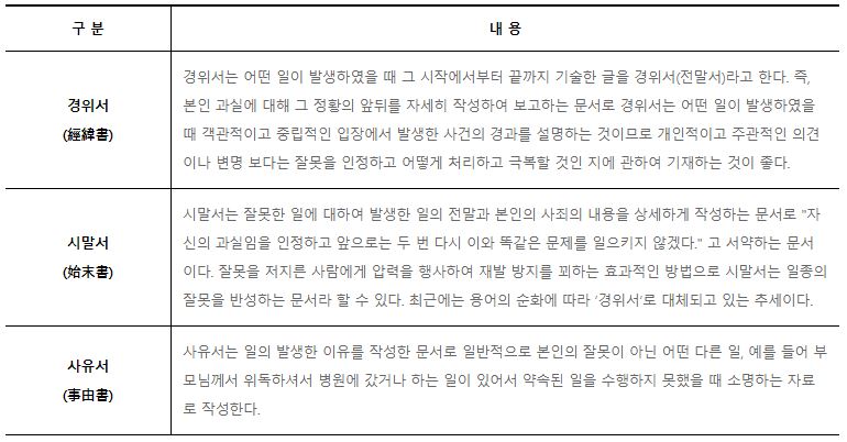 사고 경과를 보고하는 문서 '경위서' (경위서 & 시말서 & 사유서의 차이점)