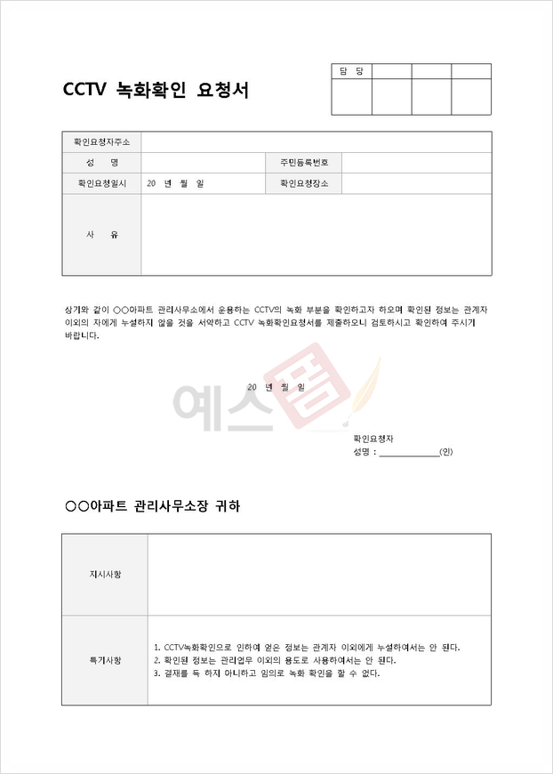 CCTV 녹화확인 요청서