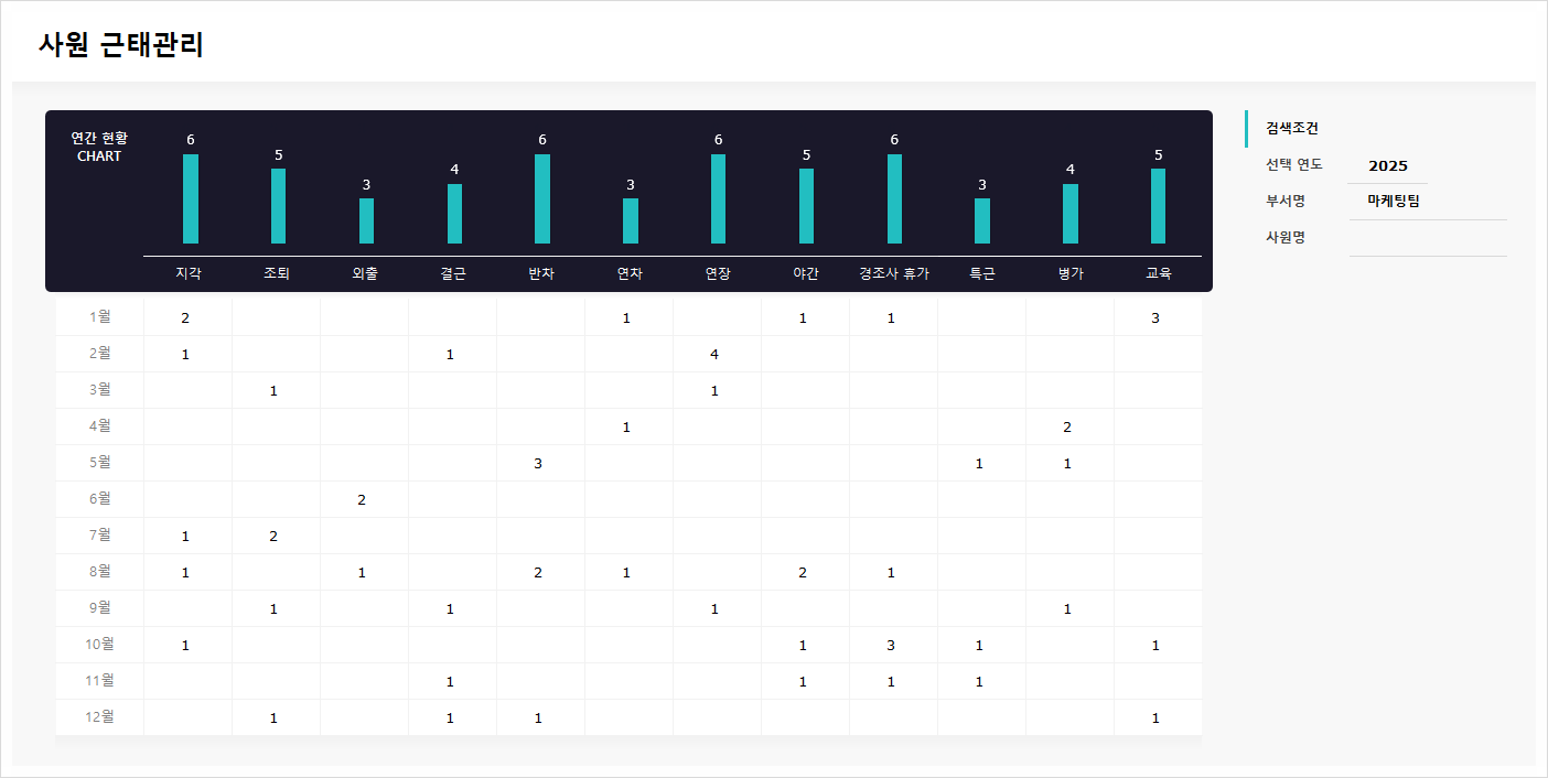 사원 근태관리 템플릿 - 예스폼 엑셀서식