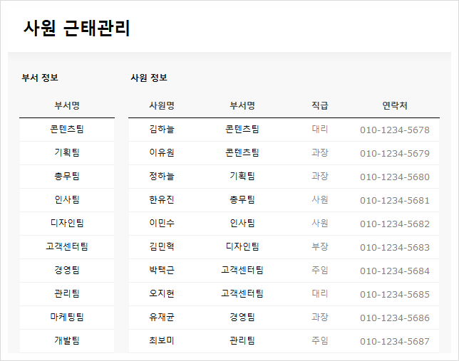 사원 기본 정보를 입력 및 관리할 수 있는 사원 관리 SHEET입니다. 부서명, 사원명, 직급, 연락처를 기재하여 회사 사원 기본 정보를 한 번에 관리할 수 있습니다. 입력된 부서명은 사원 정보 입력 시 자동으로 반영됩니다.
